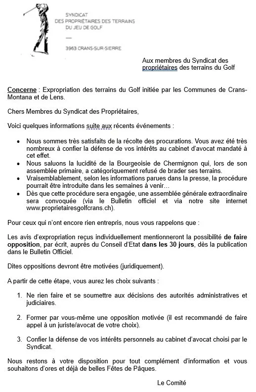 Lettre aux membres du Syndicat du 01.04.2026